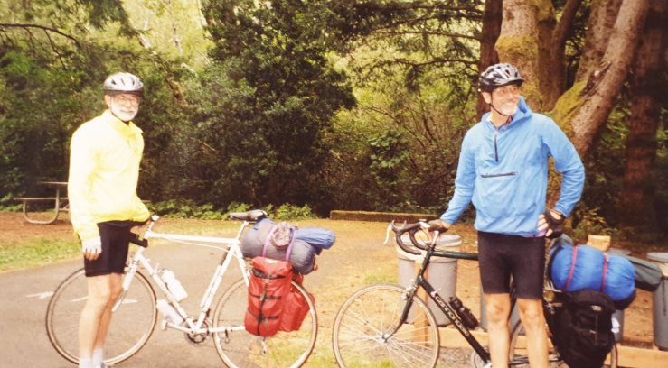 15th September and I’m in California! Hooray! With new bottom bracket, tyres and my cycling buddy Mike. It’s Redwood country. Big trees and they keep getting bigger. But my problems were just starting. I was cycling on my original tyres. They had been on the bike for three years. I had never had a puncture but over the past couple of days I have been through 5 inner tubes and lost count of the times I have stopped to patch or change them.
