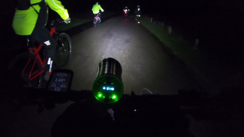 We set off into the dark of the park, chatting and laughing. The socialising every bit as good as the riding. The trails were dark, very wet and muddy. We didn’t ride fast and we didn’t ride far but it was quite exciting riding around in the dark and it was great to have kindred adventurers to ride with.
