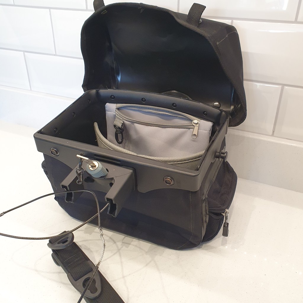 It has all the quality and waterproofness you would expect from Ortlieb, the divider insert and shoulderstrap are included.