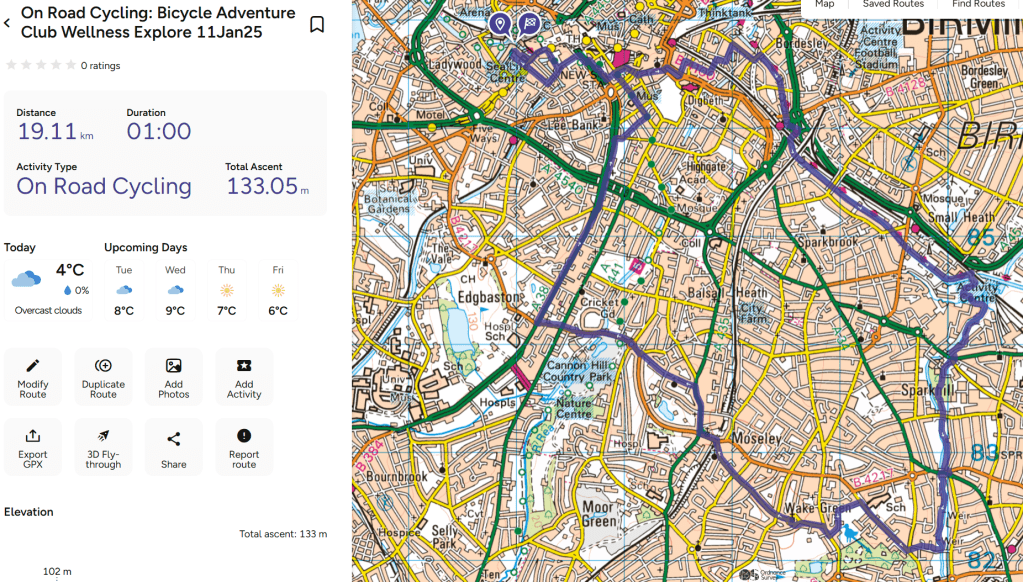 It was cold! 3-4 degrees. The bitey cold from the previous week had gone so it was less of a shock. It was great to see the crew again and be rolling around Birmingham. It feels like 2024 was challenging for many of us and it was nice to be talking life and bikes as we explored the land scape and the southern suburbs of Birmingham.